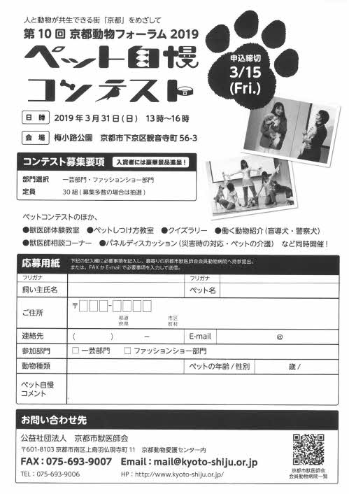 » 京都動物フォーラム2019 ペット自慢コンテスト(主催:京都市獣医師会)