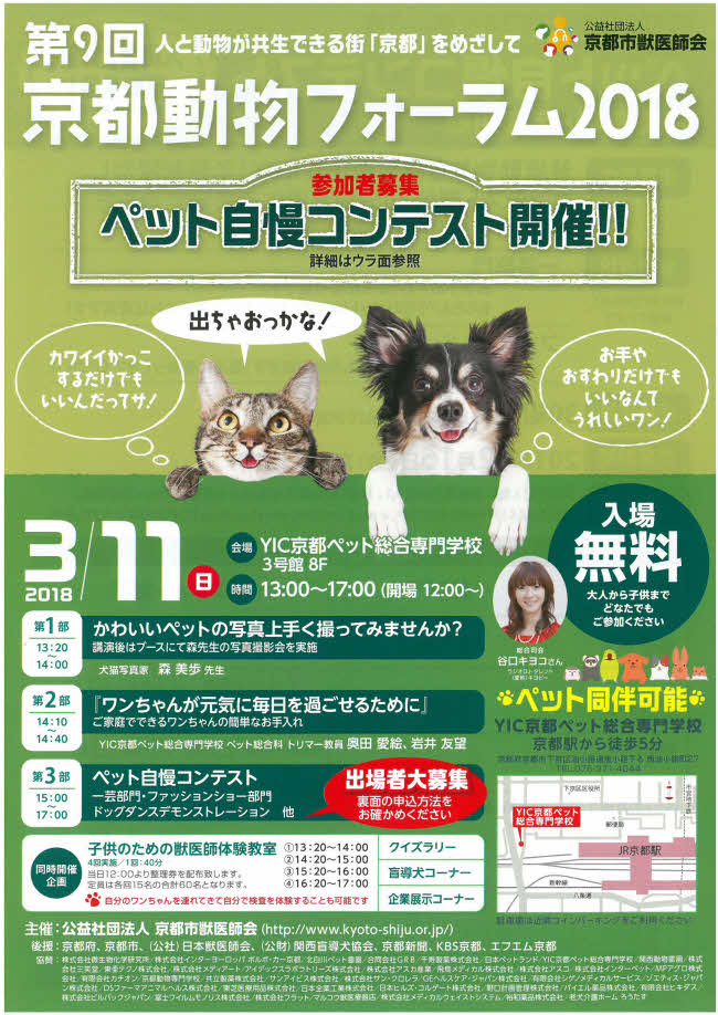 第9回 京都動物フォーラム2018(主催:京都市獣医師会)ペット自慢コンテスト出場者募集中! ■終了しました■